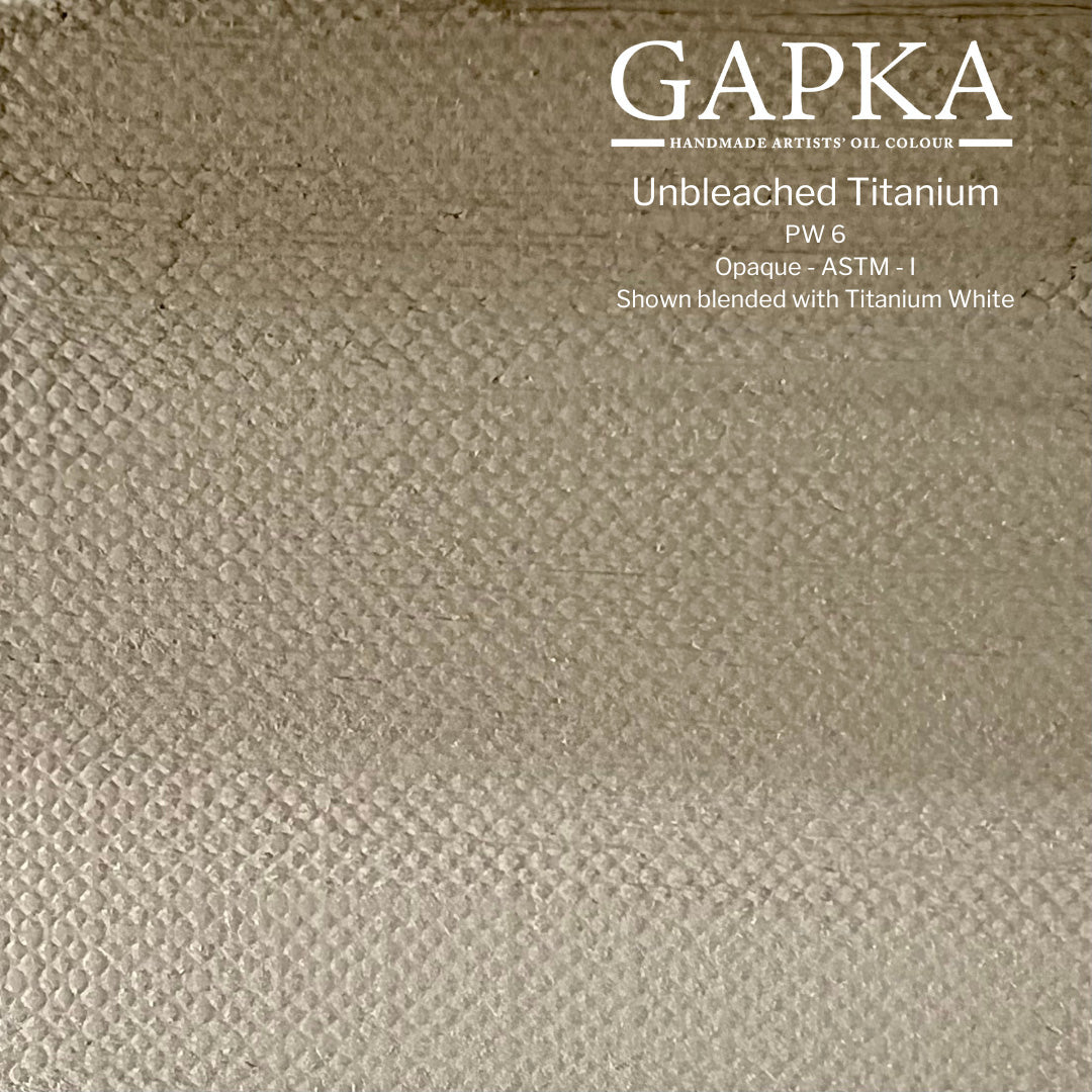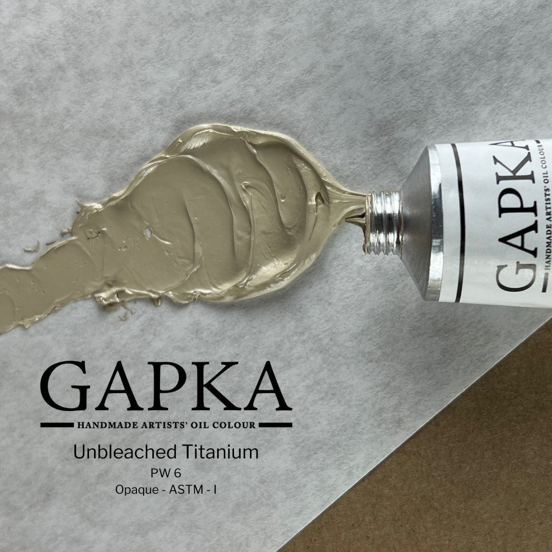 Unbleached Titanium oil paint has a warm, off-white tone with a slightly yellowish or beige undertone. This color resembles natural, unrefined whites and is often used to create softer highlights, subtle transitions, or earthy, muted shades in artwork. It’s not as stark as pure white, providing a more grounded, natural look, especially when blended with other pigments. Its warmth makes it ideal for creating more organic, sunlit effects in portraits, landscapes, and still life painting. Unbleached titanium creates a smooth, dense oil paint with strong tinting strength.